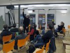 Im zweiten Teil der Veranstaltung erklärte Till Credner den Umgang mit Sternkarten. An ausgegebenen Sternkarten konnte praktisch das Auffinden von Sternbildern geübt werden. Danach berichtete Hans-Jürgen Merk über die Faszination Visuelle Deep Sky Beobachtung, mit geschichtlichen Erläuterungen und der Beschreibung einer Beobachtungsnacht mit Teleskopen, draußen in einer beeindruckenden Naturlandschaft. Matthias Pagano hatte sein komplett selbst gebautes 20-Zoll-Spiegeltelekop mit ins Biosphärenzentrum gebracht und zeigte Aufnahmen von dessen Bau. Besonders faszinierte die eigene Herstellung des großen Spiegels durch ein spezielles Schleifverfahren.