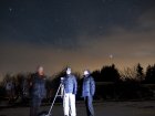 Im Anschluss an die Vorträge haben wir noch eine kleine Runde auf den ehemaligen Truppenübungsplatz angeboten, zum Aussichtspunkt Gänswag. Von hier konnte man sehr gut die Lichtglocken über Reutlingen, Stuttgart und Ulm sehen. Zu unserer Überraschung lichteten sich nach und nach die Wolken, und wir konnten tatsächlich noch einige Sterne sehen und das Gelernte am Nachthimmel nachvollziehen.
