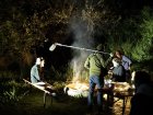 Der Nachmittag war arbeitsreich. Für die exakt parallele Ausrichtung unserer beiden Filmkameras mussten wir genaue Sternfelder und Zeiten festlegen. Abends kamen noch weitere Gäste des Meteorcamps und wir konnten Sonne und Mond beobachten, dann zog es jedoch wieder zu. Stattdessen hatten wir dann Zeit und Ruhe, um auch bei Kunstlicht Interviews für die Wissenschaftssendung Odysso des SWR zu geben. Gegen Mitternacht fing es dann, wie vorhergesagt, zu regnen.