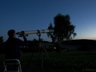 Aufgrund der guten Wettervorhersage verlängerten wir das Meteorcamp um eine Nacht bis Dienstag. Auch die Bauern ringsum nutzten das gute Wetter, um alles abzuernten, was auf den Feldern stand, leider auch bei Nacht. Abends klarte es in der Tat komplett auf. Jupiter und Saturn waren schön im großen Refraktor zu sehen. Bei Dunkelheit zeigte sich die Milchstraße mit großem Kontrast und die Durchsicht war ungewöhnlich gut. Das Sky Quality Meter ging zu Mitternacht auf bis zu 21,45 mag/(")², ein recht guter Wert für diesen Standort und die Uhrzeit auf der Schwäbischen Alb. Danach ging jedoch der abnehmende Halbmond auf und erhellte den Himmel wieder. Die Luft war ungewöhnlich warm, die Temperatur blieb in der Nacht bei fast 20 Grad, obwohl der Himmel extrem klar war!
