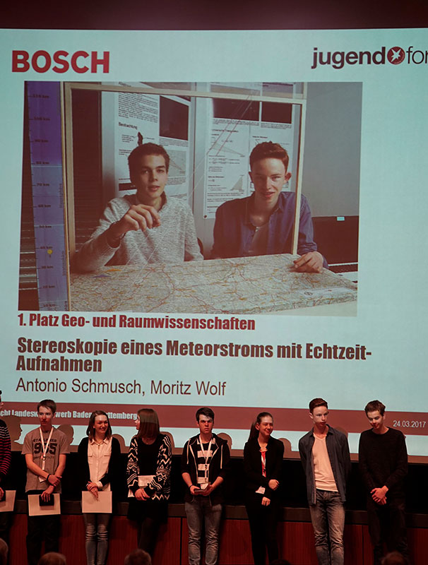 Im Februar hielt Dr.-Ing. Matthias Engel einen Vortrag an der Sternwarte Reutlingen, organisiert von der Energieeffizienzregion Biosphärengebiet Schwäbische Alb. Im März berichtete "StratoTill" Till Credner in der Festhalle Rosenfeld von seinem Abenteuer des Flugs mit dem Telekop-Flugzeug SOFIA aus dem Jahr 2016. Zwei seiner Schüler haben dann wenige Tage später in Fellbach einen Landessieg bei "Jugend forscht" erlangt, mit ihrer Forschungsarbeit im Rahmen des Meteorcamps. Anläßlich der Earth Hour und des Astronomietags, die 2017 am gleichen Tag stattfanden, haben wir zusammen mit dem Sternenpark Rhön und der Energieeffizienzregion Biosphärengebiet Schwäbische Alb ein Ratgeberblatt zu umweltgerechter Beleuchtung herausgegeben.