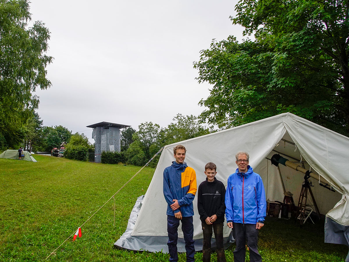 Der Nachmittag ist noch bewölkt, aber dann klart es auf. Perfekte Voraussetzung für unseren Öffentlichkeitsabend auf dem Schachen. Gestern, am 9.8., haben wir alles aufgebaut und unsere Empfangsantennen für das Radio-Scattering der Meteore angeschlossen. Zudem wurde die All-Sky-View-Kamera auf dem Kletterturm gecheckt. Abends hat es ein heftiges, aber kurzes Unwetter gegeben. In einem Wolkenloch gab es die erste Perseide. Heute Abend erwarten wir viele Besucher, die Veranstaltung ist gut in der Lokalpresse angekündigt.